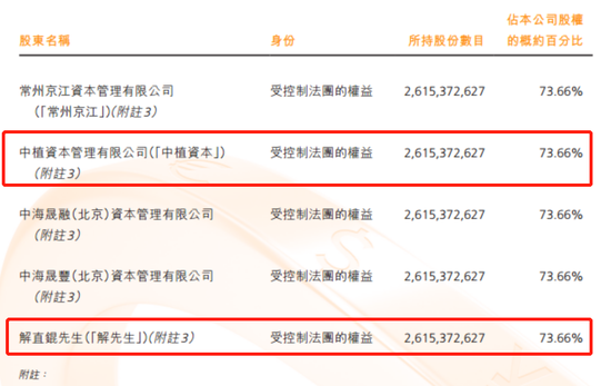 在持股方面,中植资本实际控制公司73.66%的股权,实控人为解直锟。