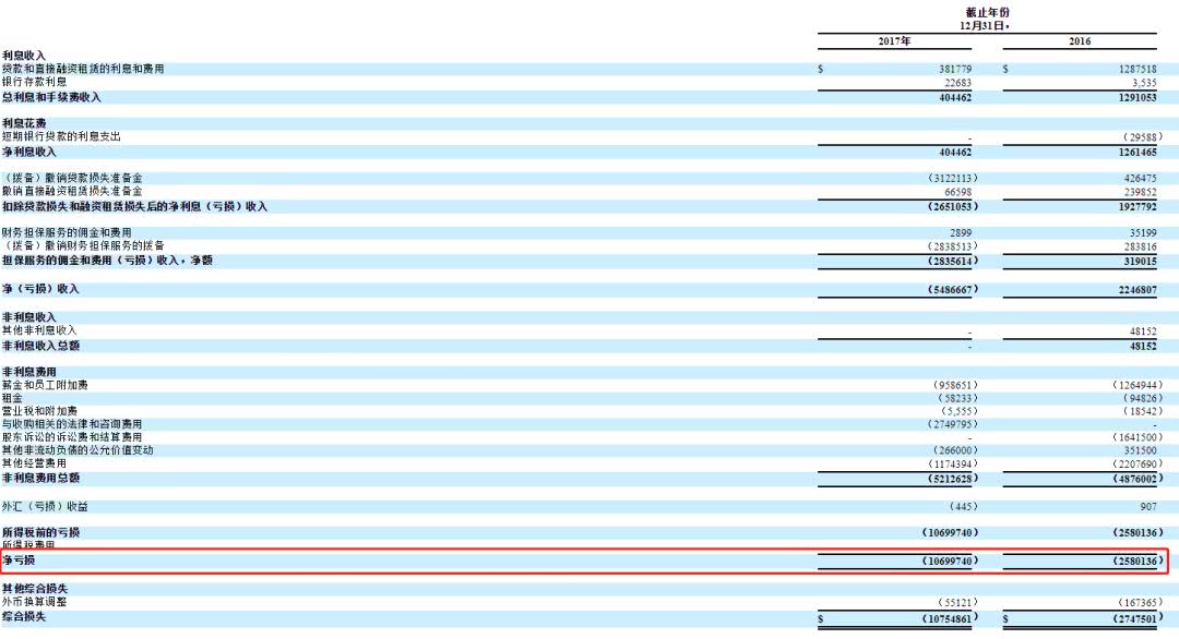 而根据其2018年4月发布的财报显示,2017年,鲈乡小贷产生巨额亏损,净亏损为1069.97美元。2016年,鲈乡小贷同样亏损258万美元。不过,互联网金融新闻中心发现,其2017年4月发布的财报显示,鲈乡小贷2016年净亏损为198万美元。