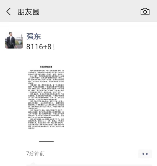 以下为其朋友圈全文: