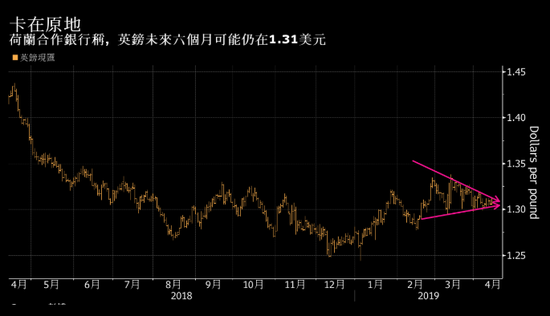 截至周五下午伦敦,本周英镑上涨0.5%,但仍接近过去几周交易的1.31美元水平。上个月对策略师进行的一项调查发现,他们预计,英国脱欧延期将使英镑上涨至1.33美元。荷兰合作银行和瑞穗银行策略师表示,在未来六个月内,该货币将难以从目前的水平上升。