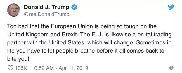 随着飞机补贴争端的升级,很多人开始担心欧盟和美国会展开贸易战。4月11日,特朗普还在社交媒体上,称欧盟为“残忍的贸易伙伴”(brutal trading partner)。