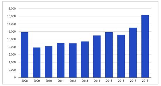 这三点对于企业来说,吸引力的确不小,所以每年都有大量的公司前往这座面积只有264平方公里的岛上注册。2014年以来,每年新注册公司均超过一万家。