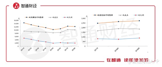 分产品看其毛利率,2016年铝产品(包括铝合金和铝合金加工品)毛利率为23.1%,2017年则将为16%,蒸汽的毛利率从28.4%降至11.4%。2018年相比2017年则基本稳定。