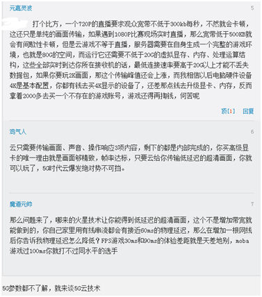 对于这个问题有观点认为,5G通讯技术普及时,更高速、更低时延的网络,云游戏将获得与实体电脑相当的体验。但英伟达老板黄仁勋则认为,云游戏永远都不会取代PC或主机游戏,其理由就是“光速”,云游戏天生就存在光速限制的缺陷,这是一个根本问题,是物理定律。因此,云游戏不会像实体电脑体验那样好,因为游戏中总会感觉到有一点滞后。