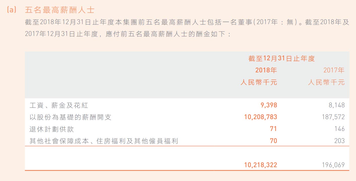 4月8日,小米集团发布的2018年度报告显示,集团前五名最高薪酬人士共获得酬金102.18亿元,相比于2017年的1.96亿元,同比增加超50倍。在薪酬构成方面,以股份为基础的薪酬开支共计102.09亿元,占比高达99.9%。