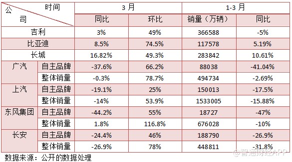 由于春节因素,2月份往往是车企一年之中销量最差的月份,但随着节后返工,3月份销量逐渐回暖,因此从3月份销量环比看,行业会有比较大的增幅,从各个参与者的销量数据中,基本都会有此表现,环比意义不大。