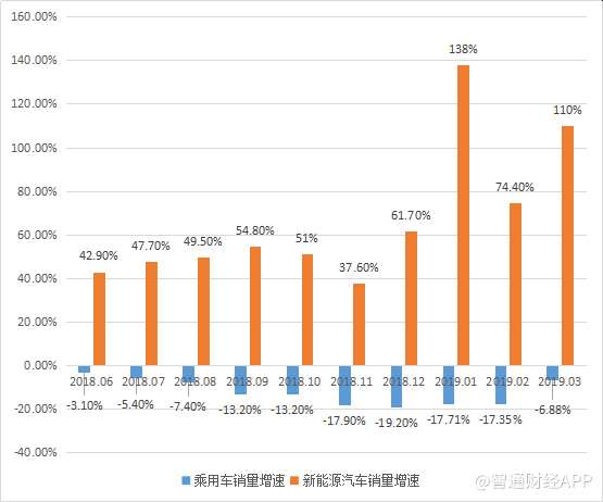 智通财经APP了解到,根据中汽协数据,2019年首季,国内汽车销量637.24万辆,同比下降11.32%,乘用车销量526.28万辆,同比下降13.72%,而新能源汽车销量29.89万辆,同比增长达1.1倍。