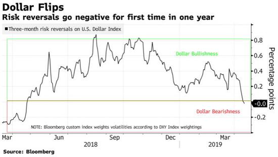 在期权市场,防范美元下跌的押注成本变得越来越高昂。风险逆转指标显示,美元兑欧元和其他主要货币的看跌期权价格开始超过看涨期权,为2018年4月以来首见。