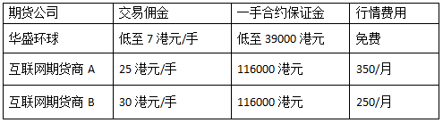 华盛环球期货与其他平台期货比较(以恒指期货为例)