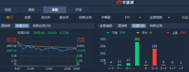 周三美股微跌,信息技术及日常消费板块领涨,医疗保健及房地产板块领跌。道指收跌0.01%报26449点;标普500指数收跌0.23%报2900点;纳指收跌0.05%报7996点。高通第二日连续大涨,芯片股提振纳斯达克100创新高。