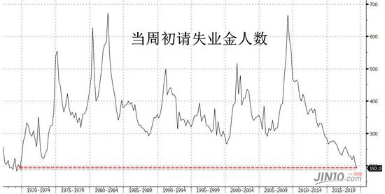 同时公布的还有美国至4月13日当周初请失业金人数,录得19.2万人,略低于预期的20.5万人,前值上修为19.7万人。该数据已经连续五周下降,本周更是再次刷新近49年半以来的低位,半个世纪以来首次连续两周录得低于20万人,表明美国就业情况仍保持强劲。