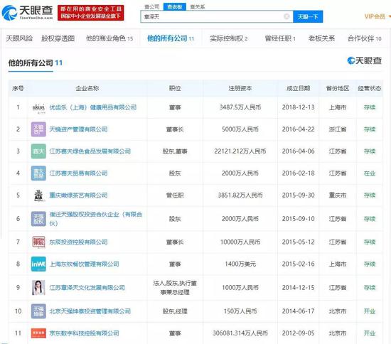 截至4 月10 日,章泽天所有或(曾)任职公司情况。(数据来源:天眼查)截至4 月10 日,章泽天所有或(曾)任职公司情况。(数据来源:天眼查)