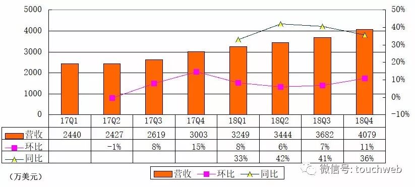 Fastly在2018年第四季度营收为4079万美元,较上一季度的3682万美元增长11%,较上年同期的3003万美元增长36%。