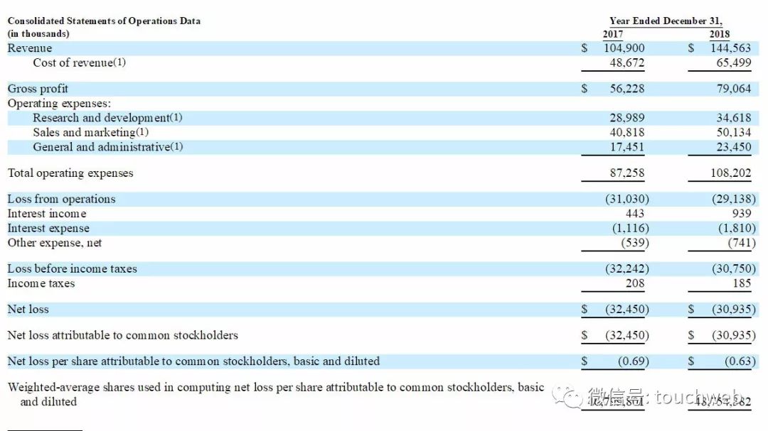 Fastly 2018年营收约为1.45亿美元,而2017年为1.05亿美元。Fastly在2018年运营亏损2913万美元,而2017年亏损3100万美元。