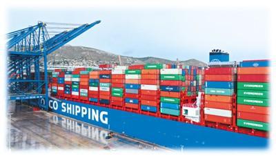 中国超大型集装箱货轮“中远海运双鱼座”在经过近一个月的航行后,于2月15日抵达欧洲,停靠希腊比雷埃夫斯港。新华社记者 吴鲁摄
