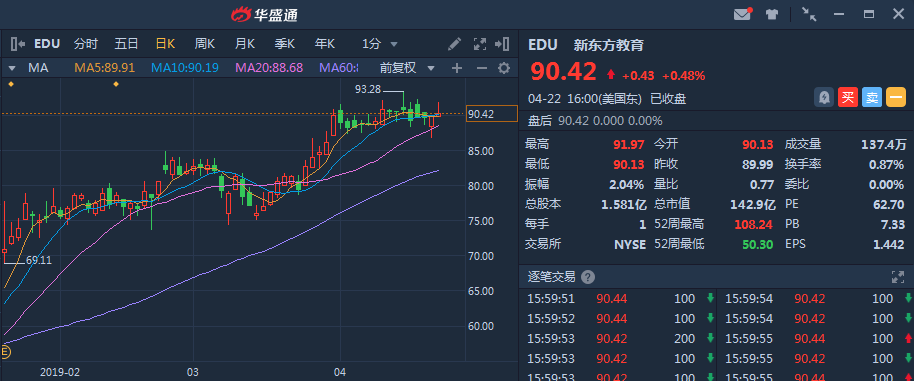 此外,根据雅虎财经,4月份覆盖新东方的分析师从29为减少到25位,其中有8位强烈推荐,减少一位,15位推荐,与过往持平,但是新增两位低于大盘的评级,平均目标价是89.71。