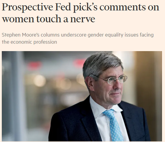 英国《金融时报》报道了美国经济评论家、今年潜在的美联储理事候选人斯蒂芬-摩尔(Stephen Moore)批评女性在职业体育领域追求薪酬平等的最新言论,这触及了一个对美联储和更广泛意义上的经济学职业都非常敏感的话题。