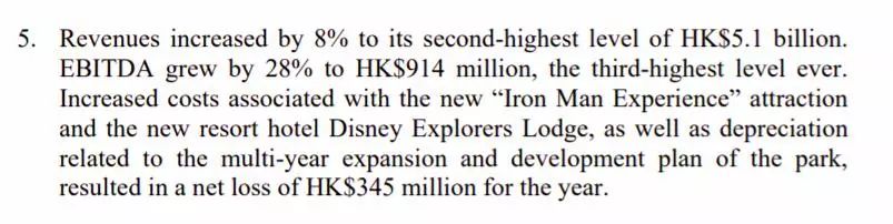 但是就在人们都以为香港迪士尼终于可以赚钱的时候,2015年,香港迪士尼一下由盈转亏,当年亏损1.48亿港元,营业收入约51亿港元,比2014年减少了6.4%