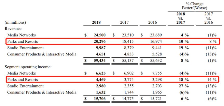 这之中有一部分原因是由于电影票房喜人为影视部门带来的大幅增长,但从长远来看,游乐园业务才是增长的头功。