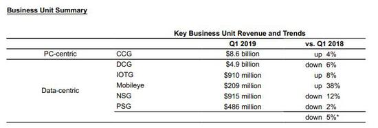 但英特尔围绕数据中心的业务收入在一季度同比下跌5%: