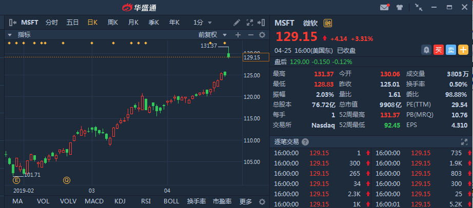 4月24日,微软发布了2019年第一季度的新财报,营收、净利润增长再次超市场预期,受财报影响,微软接连两天大涨,距离万亿市值只差一步之遥。