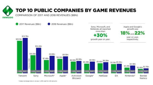 近日,市场调研机构Newzoo发布了2018年全球游戏市场报告中显示,腾讯蝉联第一,索尼位居第二,微软以营收98亿美元排在第三。在本次财报中,微软的游戏营收再次实现了同比跟环比增长,说明微软在游戏领域还是具备一定的竞争优势,但是两个游戏巨头腾讯跟索尼的实力都不容小觑,微软要想取得更大的突破,必须加大力度研发出更受消费者喜爱的产品。