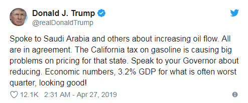 “(我)与沙特阿拉伯和其他国家讨论了增加石油产出的问题。大家都同意,”特朗普在推特上写道。