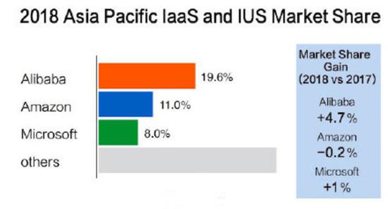 2018年亚马逊AWS亚太地区的云计算市场占有率达到11%,对比本土云服务新势力,比如阿里云,在亚太市场的占有率已达19.6%。两者存在不小的差距。