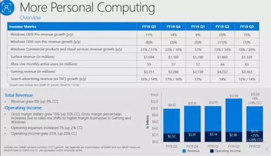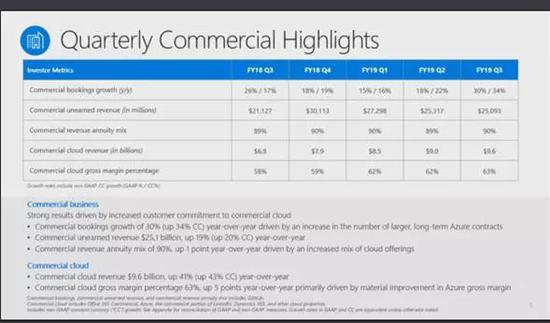 受Azure的改进推动,商业云计算的毛利率较去年上升了5个百分点。