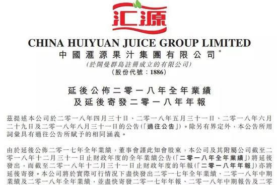 2018年4月3日,汇源果汁宣布停牌。随着违规借贷,以及公司超115亿元的债务被曝出,汇源果汁陷入前所未有的危机中。