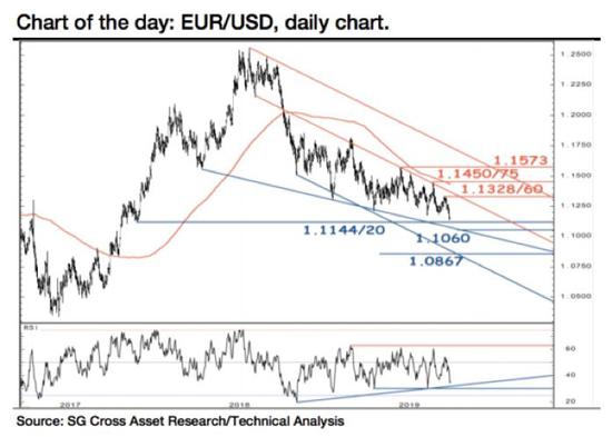 近期,欧元/美元已经跌破了3月低位(1.1175),并向关键支撑位1.1144跌去。这也是2017年6月的低点。欧元/美元从去年2月以来就开启了一轮猛烈跌势,近期并没有显现企稳迹象。