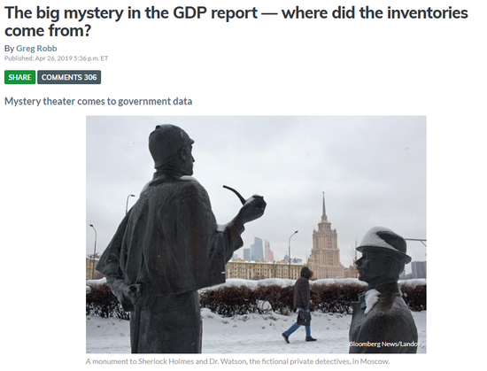 美国商务部周五公布第一季度GDP数据。数据显示美国一季度GDP折合年率增长3.2%大超预期,创2018年三季度以来新高。然而GDP报告中最大的谜团是——库存从何而来?美媒称,能破了这个案子甚至会让福尔摩斯感到骄傲。