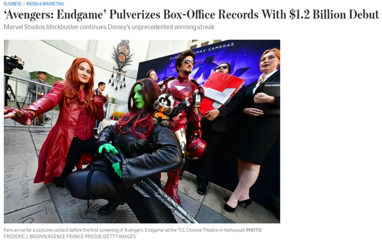 据《华尔街日报》报道,华特-迪士尼的《复仇者联盟4:终局之战》成为好莱坞历史上第一部全球首映票房超过10亿美元的电影。