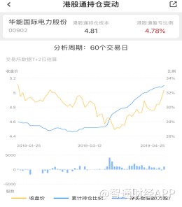4月25日,港股通数据显示,南下资金净买入前三的个股其中就包括华能国际电力,截至该日,其港股通持股比例已由3月初的26%上升至33%,持续多日呈现净买入。此外,华电国际的持股比例亦由近22%上涨至24.8%。
