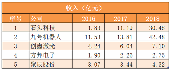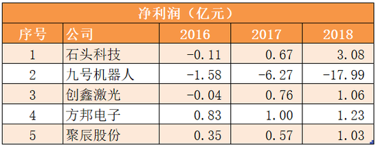但是,九号机器人的净利润已经连续三年为负,也是这五家公司中唯一亏损的企业。2016年、2017年及2018年,其净亏损分别为1.58亿元、6.27亿元和17.99亿元。