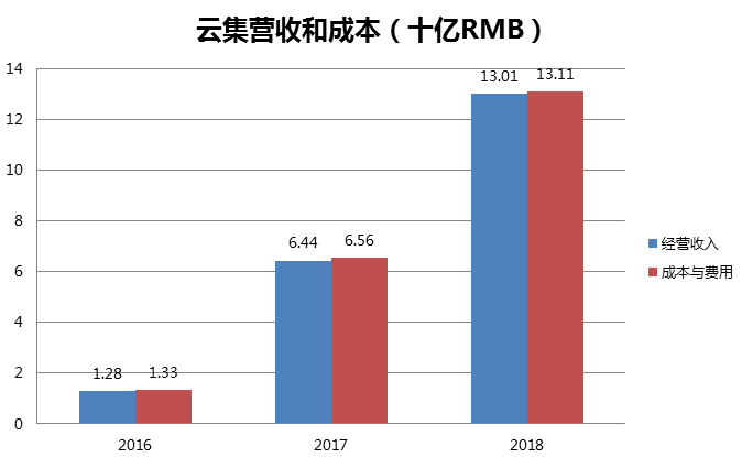 除开商业模式上的风险,我们来看看云集的财务报表。2018年云集总收入达130.1亿元,相较2017年64.44亿元的全年营收,同比增长达101.97%。但是2018年云集的成本和费用支出达到了131.1亿元,比收入更高,同比17年增长99.85%。2016年-2018年云集的经营亏损分别为4705万、1.14亿和9940万。