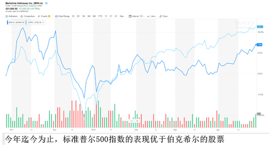 不过,虽然巴菲特自己对自家股票非常看好,但投资者可能无法完全苟同。据金融时报计算,在过去十年中,投资伯克希尔得到的收益似乎还没有投资标准普尔500指数基金高。若一个投资者在10年前买入1美元伯克希尔股票,其如今的回报是2.4美元,但如果把这1美元投到了标准普尔500指数基金中,那如今的回报将为3.2美元。