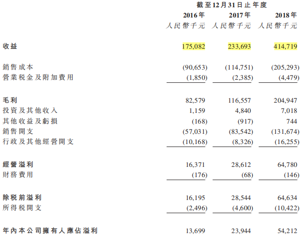 公司的业绩在2018年出现了大幅增长,全年营收4.15亿人民币,相比2017年的业绩接近翻番。2016-2018年间的复合年增长率也达到98.9%,接近连续两年营收翻番的水平。