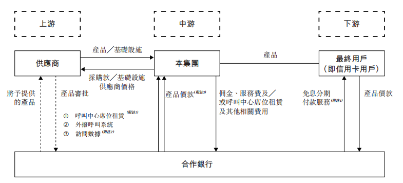 该业务是公司的第一大业务,也是主要收入来源,近三年该业务的营收占比一直维持在70%左右。该业务以商务流程外包形式开展,由银行决定产品种类并提供信用卡分期服务,而公司则负责采购和销售流程。