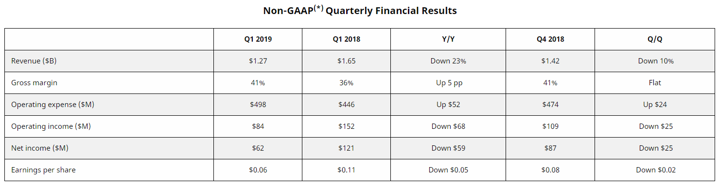 季度营收12.7亿美元,高于分析师预计的12.6亿美元(区间12.5亿美元至12.9亿美元),不过同比下降23%,主要源于计算和图形业务收入下降,环比下降10%,主因是客户处理器销售下滑。