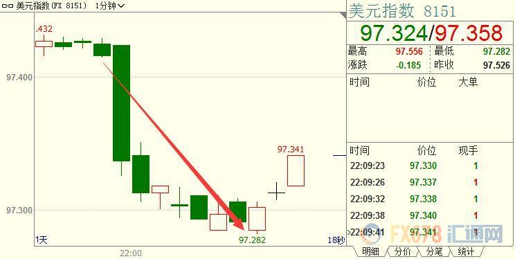 北京时间周三(5月1日)22:00,美国公布的4月ISM制造业PMI大幅不及预期。截至发稿,美指下挫13点至97.282,现货黄金跳升4.5美元至1285美元/盎司。