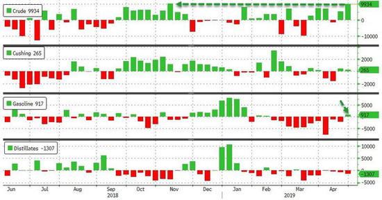 美国4月26日当周EIA原油库存大增993.4万桶,预期增加175万桶,前值增加547.9万桶。