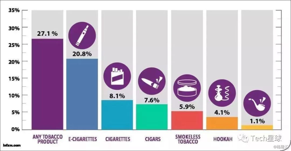 美国疾病预防控制中心(CDC)吸烟与健康办公室发布的报告中显示,2018 年,高中生的吸烟率高达 38.3%,而新增的主要是电子烟消费者,150 万名美国青少年加入了电子烟大军,其中高中生的使用量激增了 78%,初中生则激增了 48%。