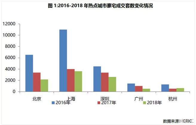 如上图所示,千万级以上豪宅,2018年,上海卖了3610套,北京卖了2156套,广州卖了503套,深圳大约2300套,杭州卖了623套。
