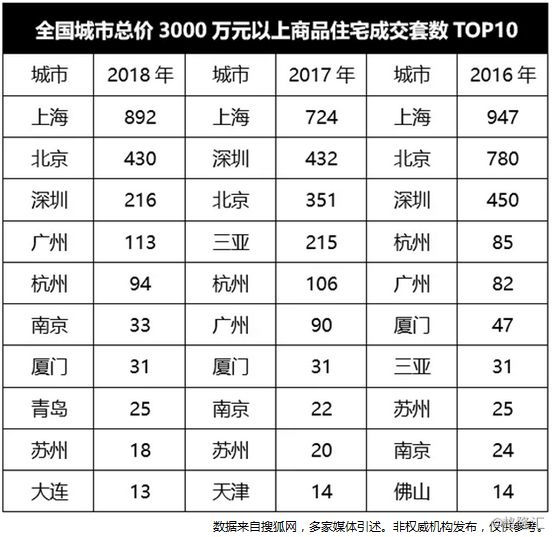 3000万以上房产,北京的成交量大约是上海的一半,深圳是北京的一半,广州是深圳的一半,杭州和广州接近。其他城市的成交套数实在太少,就不一一说明了。