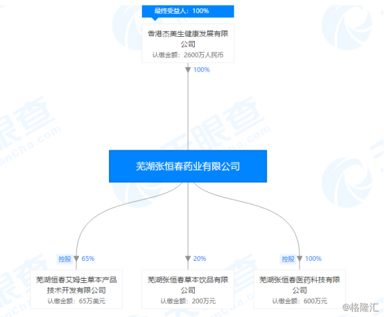 根据天眼查,该公司的实际控制人为香港杰美健康发展有限公司,属于2015年注册,2017年通过认缴出资100%控股,属于赴港上市的准备计划之一。