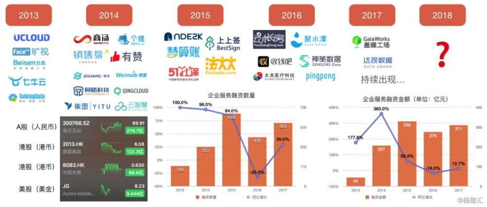 上面这个图列举了过去5年间,企业信息技术服务这个赛道涌现出的明星企业。