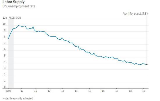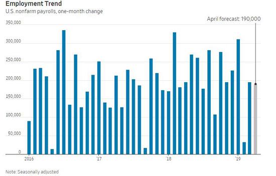 美国劳工部周五将发布4月份就业市场报告。接受《华尔街日报》(The Wall Street Journal)调查的经济学家预计,经季节因素调整后,4月份新增就业人数将为19万人,失业率将维持在3.8%。以下是该报告中需要关注的五个要点。