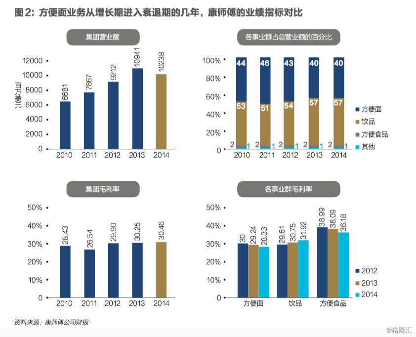 方便面业务从增长期进入衰退期的几年,康师傅的业绩指标对比: