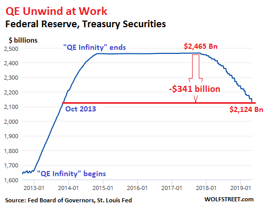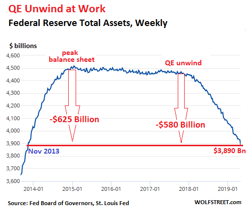 也就是说,自2017年10月开始渐进式缩表计划以来,美联储已经削减了5800亿美元的资产,这在联储历史上绝无仅有。